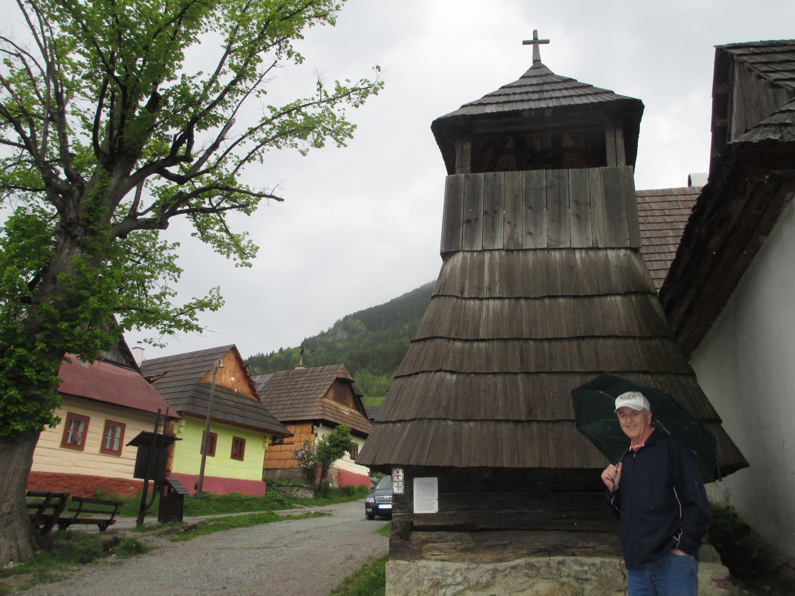 | Zuzka had invited us to go to another famous tourist spot on Sunday afternoon, rain or shine, and it was raining, but we had umbrellas!! :-) She drove us to Vlkolínec, which is a historic village where time stands still and some people still live in old, old houses that were typical for this region a century or more ago. |
